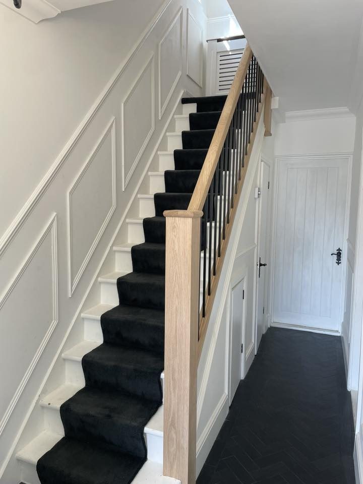 Premium staircase upgrades and joinery details that transform the look and feel of the hallway.